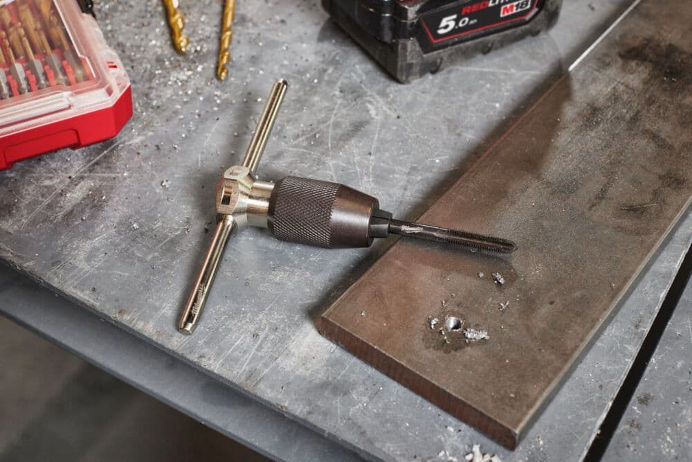 - M3-0,50 mm Nut-Taps, M4-0,70 mm, M5-0,80 mm, M6-1,00 mm, M8, 1,25 mm / 1″ Hexagon-Taps M3-0,50 mm, M4-0,70 mm, M5-0,80 mm, M6-1,00 mm, M8, 1,25 mm / 2,5 mm Bohrer, 3,3 mm, 4,2 mm, 5,0 mm, 6,8 mm / T-Griff / 1″ sechskantige Gewinde-Ösen