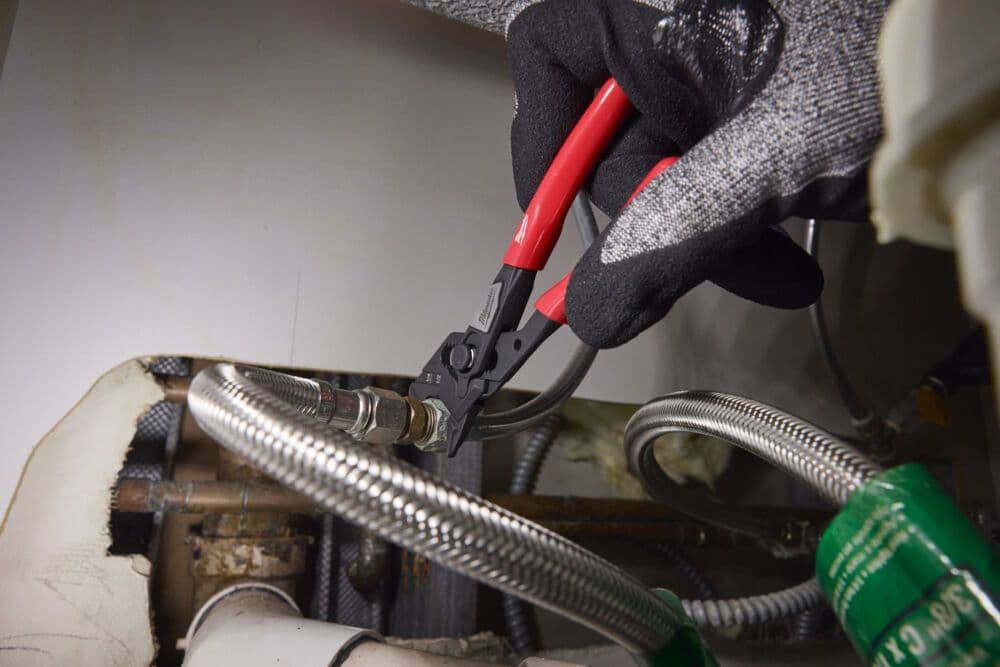 - Smooth jaws for working without damaging chrome-plated surfaces, e.g. when installing fittings.